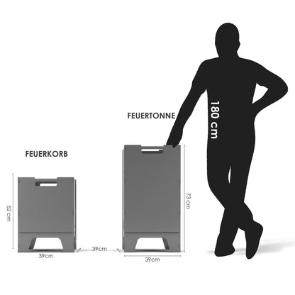 Unser Feuerfass ist dank des Stecksystems ohne Werkzeuge leicht auf- und abbaubar und nimmt das separat erhältliche Zubehör (wie unseren beliebten Plancha oder den Grillaufsatz) nahtlos auf. Wenn es mal nicht die Herzen mit Feuer erwärmt, wird es zum Pflanzkorb, Hocker oder Stehtisch. Aber auch solo ist unser Feuerkorb ein stylisches Designobjekt und kann zum Herzstück Ihres Gartendesigns werden.
